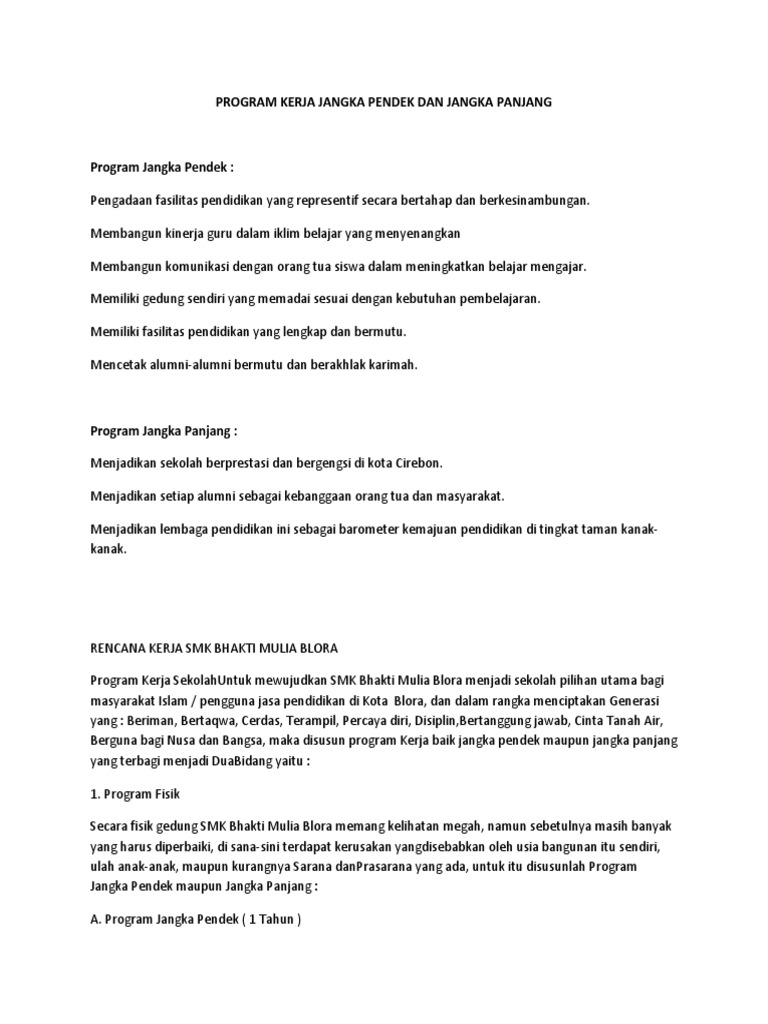 Program Kerja Jangka Pendek Dan Jangka Panjang Pdf